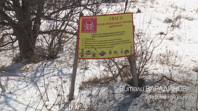 Иван Вервейко ни демонстрира следите от снаряди, останали от борбите, както и КПП-то, контролиращо достъпа до територията под властта на сепаратистите. За хората в околните села войната към този момент е част от всекидневието.