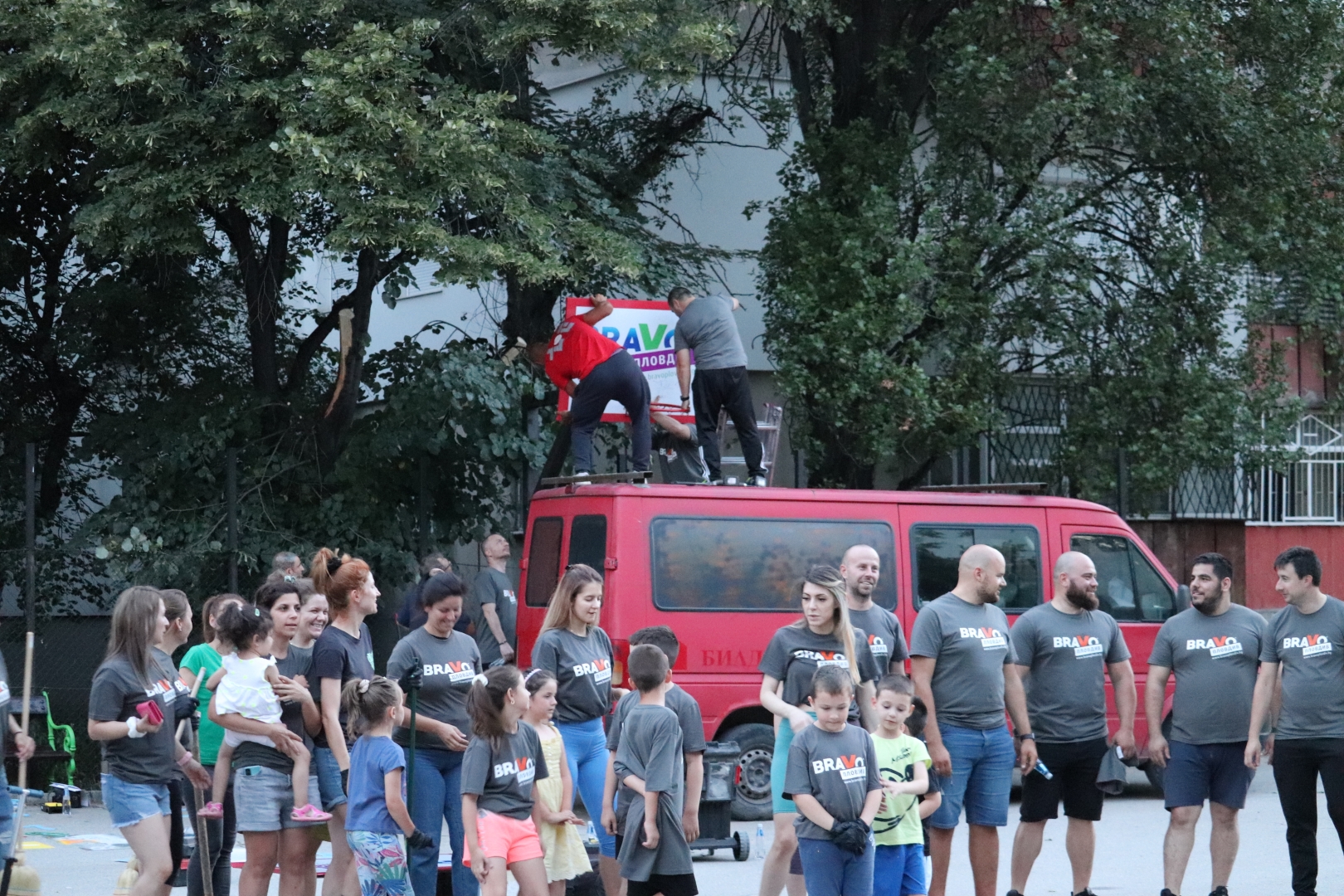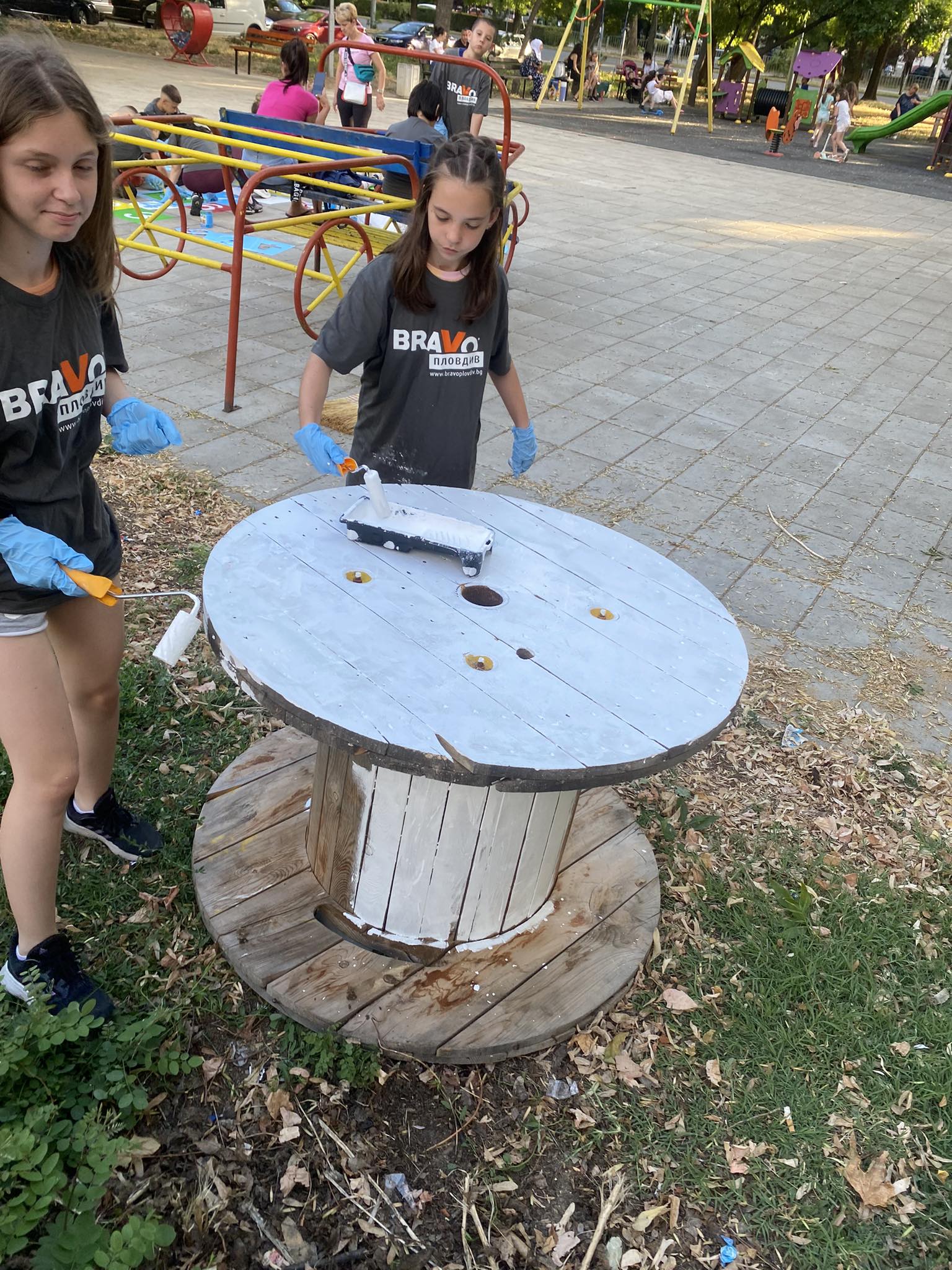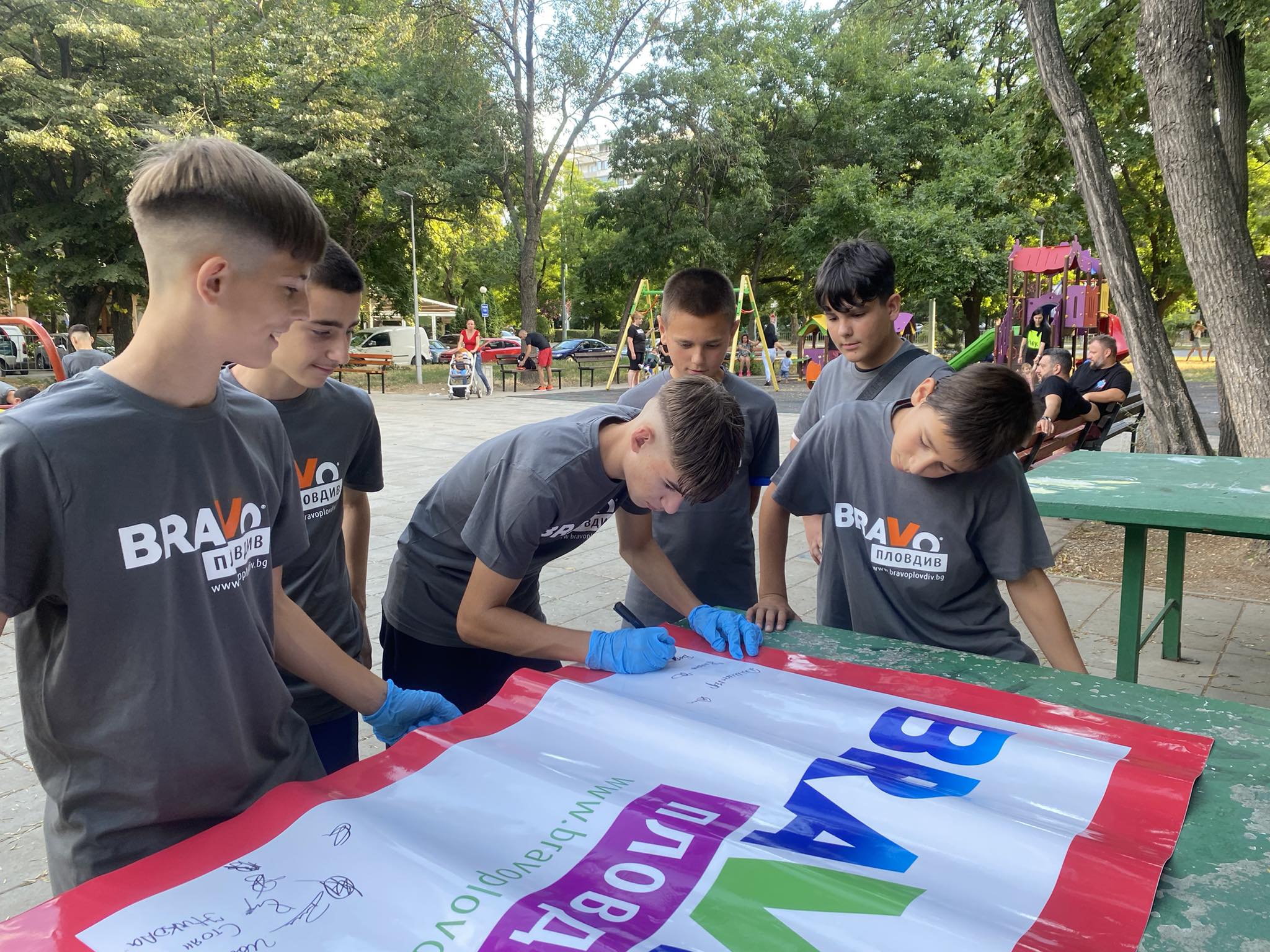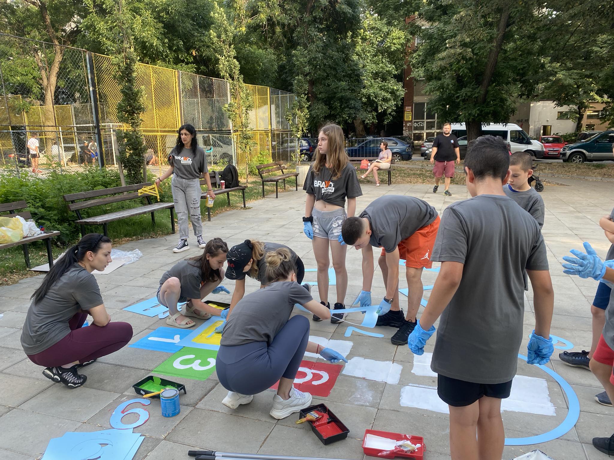 Много родители се включиха с малчуганите си и в съживяването на спортната площадка на ул. „ Нева ” в Кючук Париж. Пловдивчанин оказа неоценима помощ на бригадата, като се включи в монтирането на баскетболните кръгове на игрището. Друг родител – Траян Иванов самоотвержено боядисваше пейки дружно със сина си в продължение на три часа. дружно с други родители съумяха да освежат цели 14 пейки. За най- дребните рисуването на пъстроцветната „ дама ” се трансформира в същинско прекарване. На финала множеството приличаха на индианци, тръгнали на война, само че ядосани родители нямаше, още повече че употребяваните бои бяха водно разтворими.