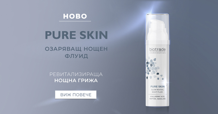 Революционната формула на флуида за нощно прилагане на biotrade ти носи чувство за прохлада и мекост още при първи досег с него. При неизменност и постоянно нанасяне с леки масажни придвижвания преди лягане, ще забележиш по какъв начин тенът ти последователно се изглажда, кожата ти се уплътнява и връща блясъка си, а фините бръчки избледняват. Безотказният подмладяващ резултат на Pure Skin флуид се дължи на мощното му хидратиращо деяние, както и на това, че подтиква синтеза на колаген. Именно колагенът е виновен за младостта на твоята кожа. Той я прави еластична и плътна и е зложелател номер едно на фините бръчки. Pure Skin флуид в действителност комбинира шест съставки, които взаимодействат по този начин, че да са в стопроцентова услуга на твоята кожа.Със сигурност знаеш за изгодите от . Тя участва в точното количество в Pure Skin флуид и заключва влагата в кожата до 72 часа. Бонусът в тази ситуация е, че хиалуроновата киселина е обогатена със съставката Aquaxyl, която влиза в ролята на бустер и удвоява нейното деяние.