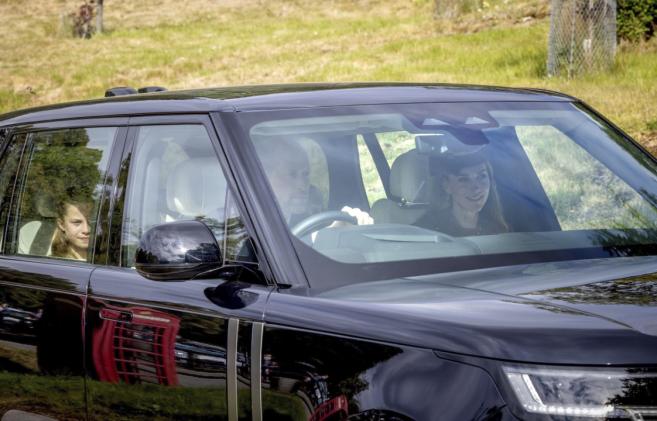 Бъдещата кралица седеше на предната пътническа седалка, до момента в който 43-годишният Уилям управляваше автомобила. На задната седалка бяха 12-годишният принц Джордж, 10-годишната принцеса Шарлот и 7-годишният принц Луи. Русата коса на Мидълтън, с която тя дебютира през април, изглеждаше още по-светла, когато слънчевите лъчи огряваха лицето ѝ през прозореца на колата.