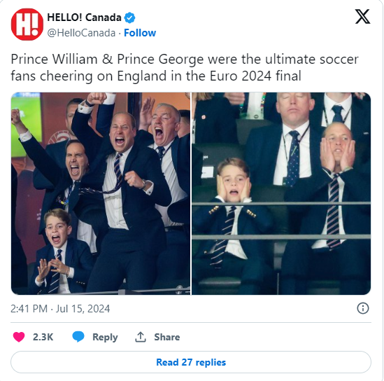 На идващия месец Джордж пътува до Берлин, Германия, дружно с татко си, принц Уилям, където двойката участва на финала на ЕВРО 2024, когато Англия се изправи против Испания във футболната среща.