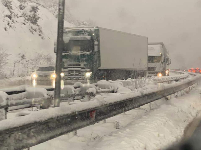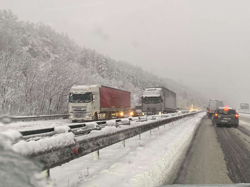 Брутална тапа на АМ “Тракия“ в посока Пловдив заради силния снеговалеж, движението е блокирано с часове