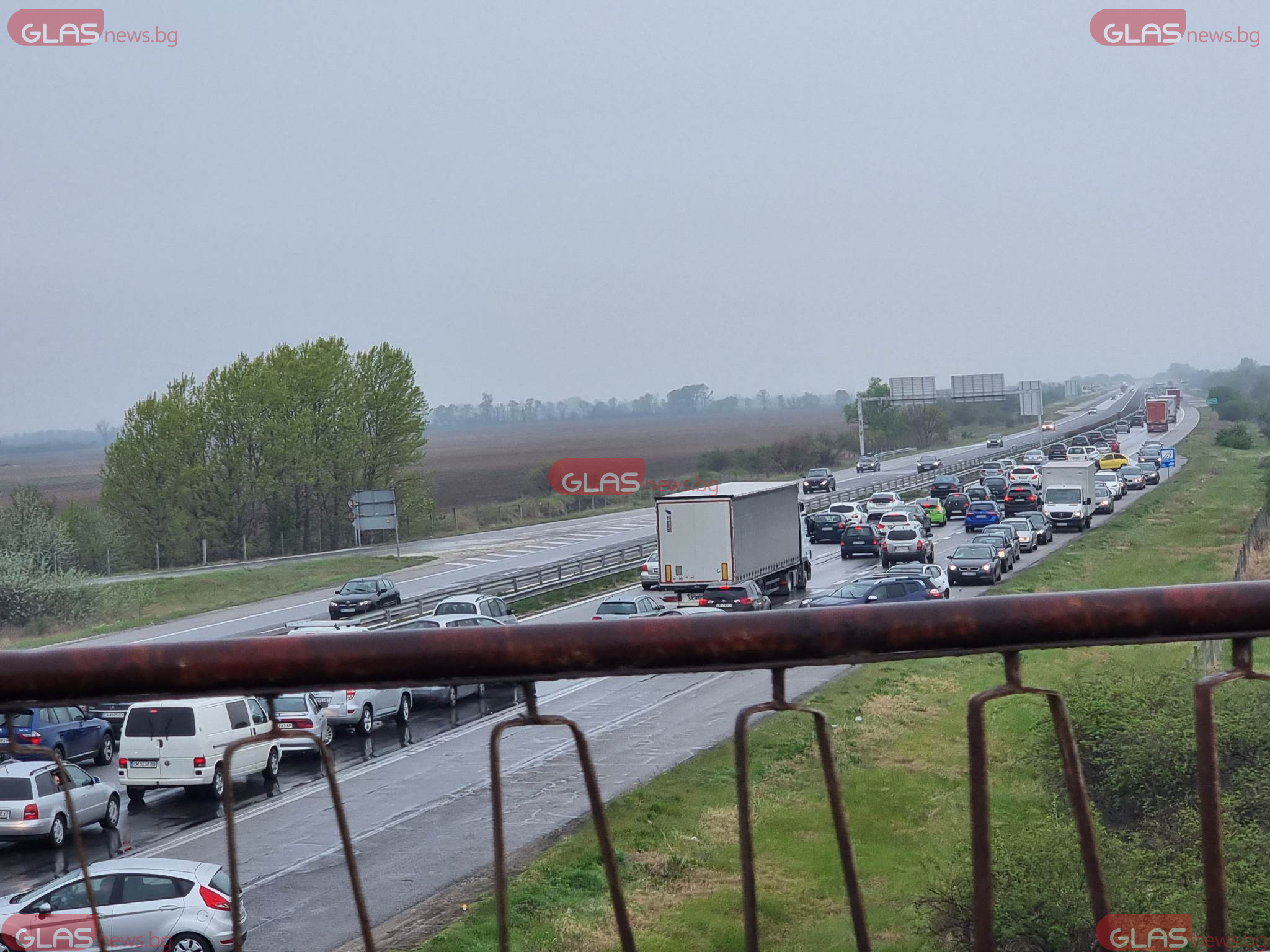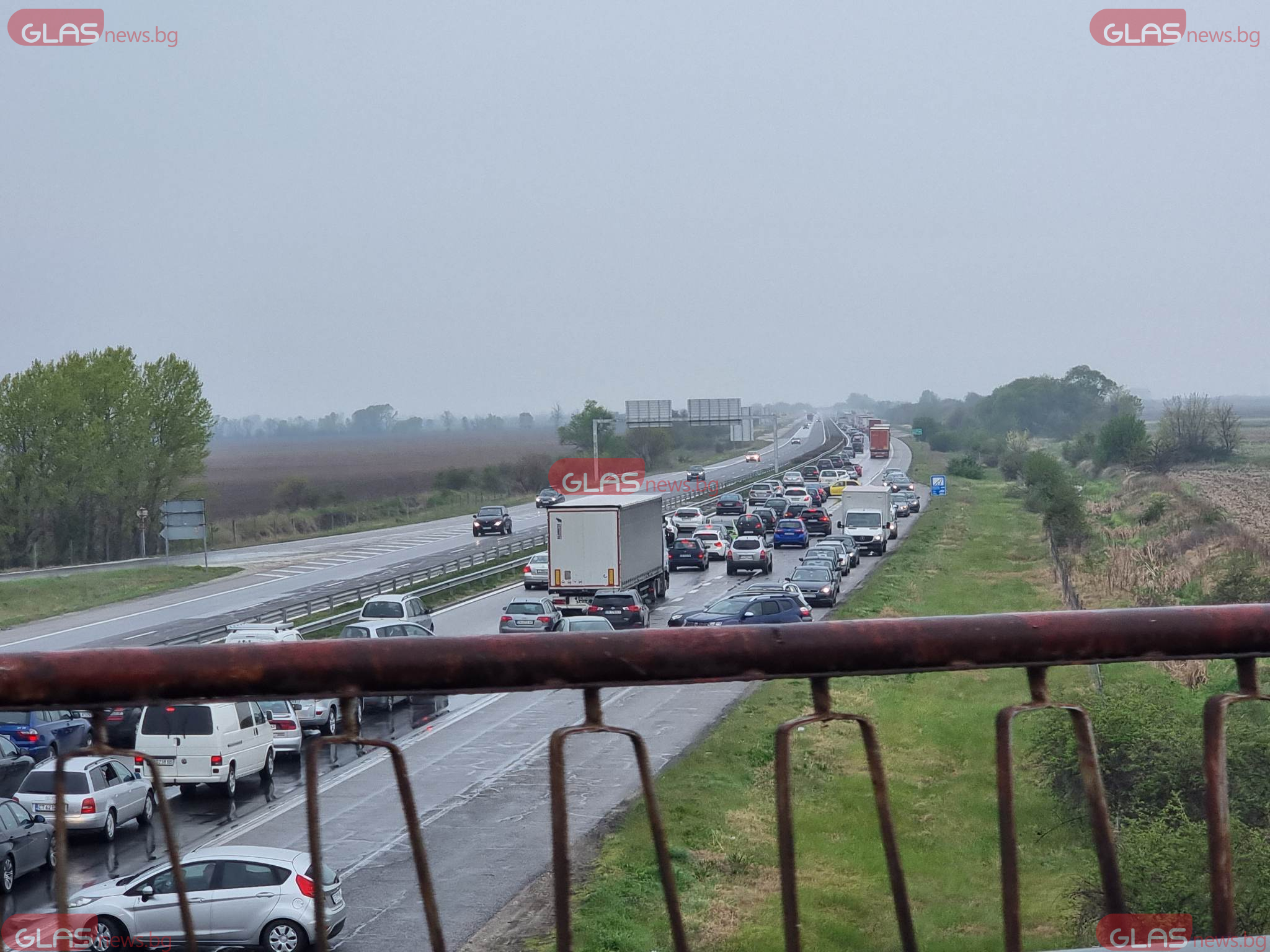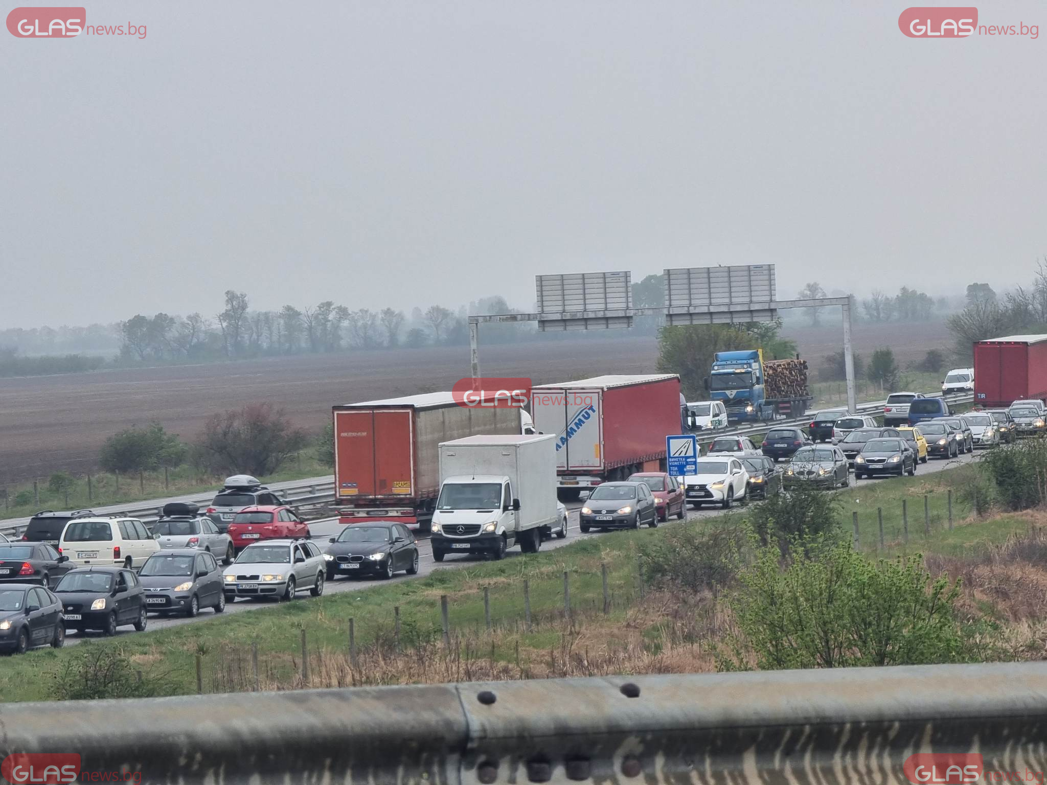 Колите обръщат в спешната лента и заобикалят през Цалапица и Пазарджик. Това заяви кореспондент на GlasNews.bg.