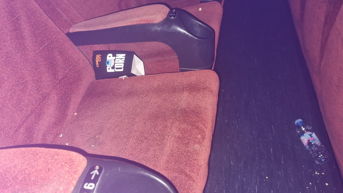 На оповестените от нея фотоси се виждат хвърлени по земята и „ забравени “ по седалките кутии за пуканки, бутилки от вода и останки от пуканки.
