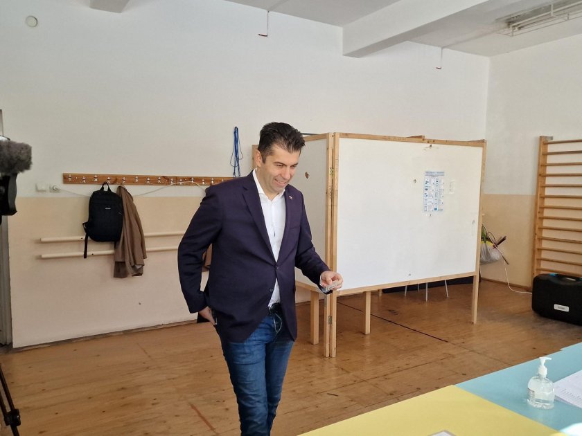 Хит снимки: Кирил Петков гласува с разкопчан дюкян