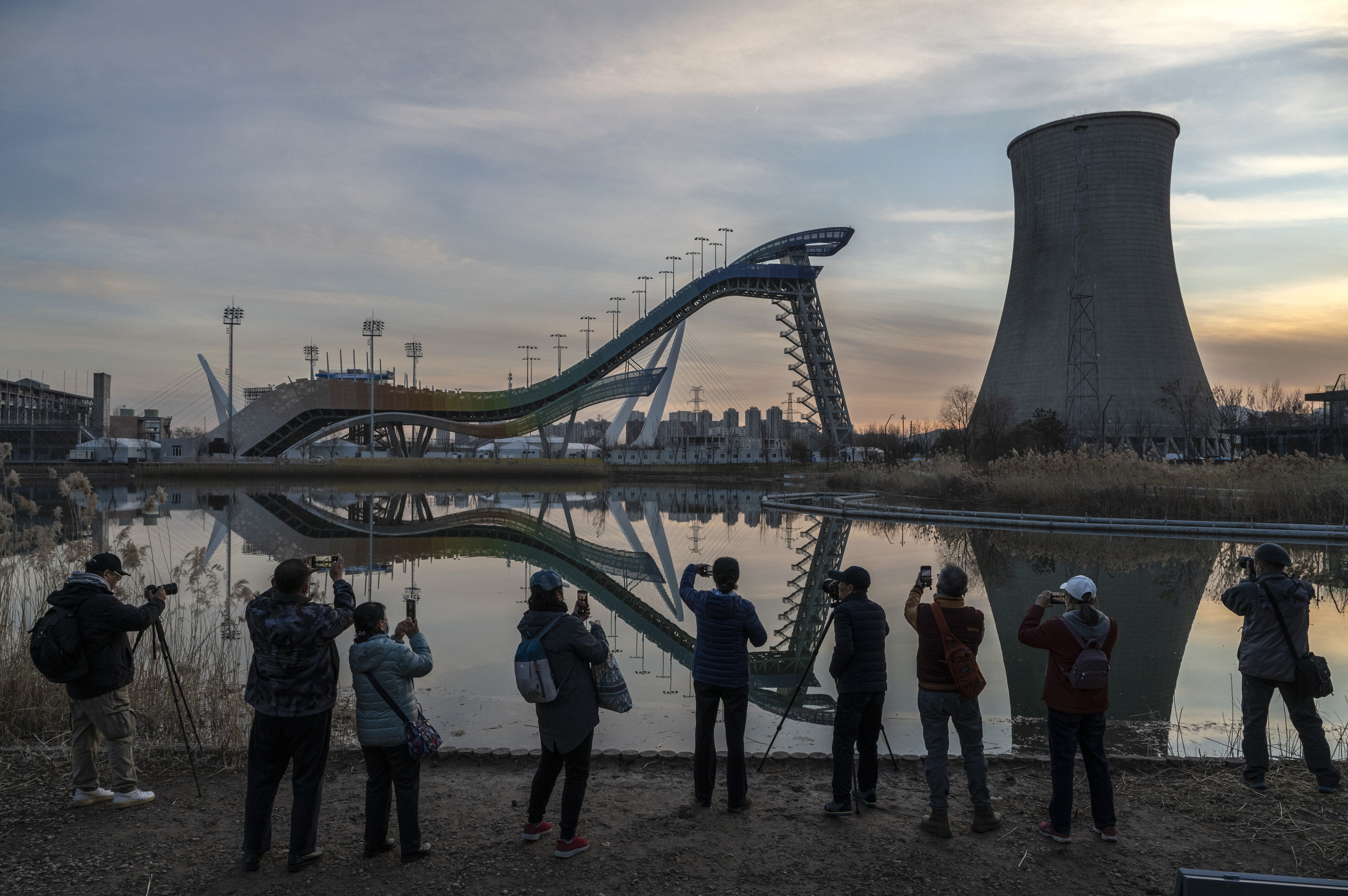 Най-абсурдно наподобява пистата за скискокове в Шауганг - голямата площадка се издига на фона на четири охладителни кули, които принадлежат на металургичен цех в западен Пекин, завършил с производството си доскоро повече от 10 години.