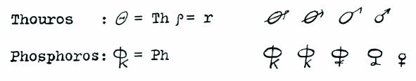 Когато пишат за тези метали, гърците ги назовават с прилежащите им богове. След време имената на боговете стартират да се редуцират за по-лесно и по този начин, да вземем за пример, от Марс (Thouros) и Венера (Phosphorus) се получават следните знаци:
