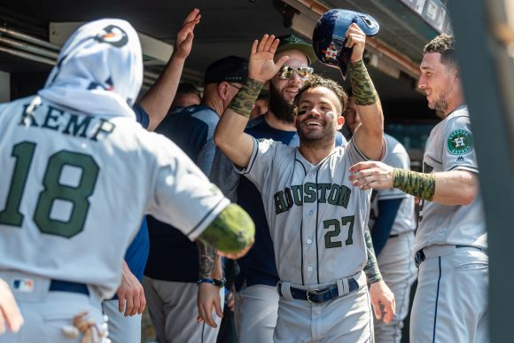 В 9-ия обаче Кливланд отвърна с 5-точкова офанзива против трима питчери на Хюстън. По 1 RBI с единични шлагери записаха петима разнообразни батери – Йондер Алонсо против Кен Джайлс без навън, Джейсън Кипнис и пинч-хитърът Ерик Гонсалес против Уил Харис с 1 навън и Франсиско Линдор и Майкъл Брантли против Ектор Рондон (BS 2) с 2 аута за 8:8.