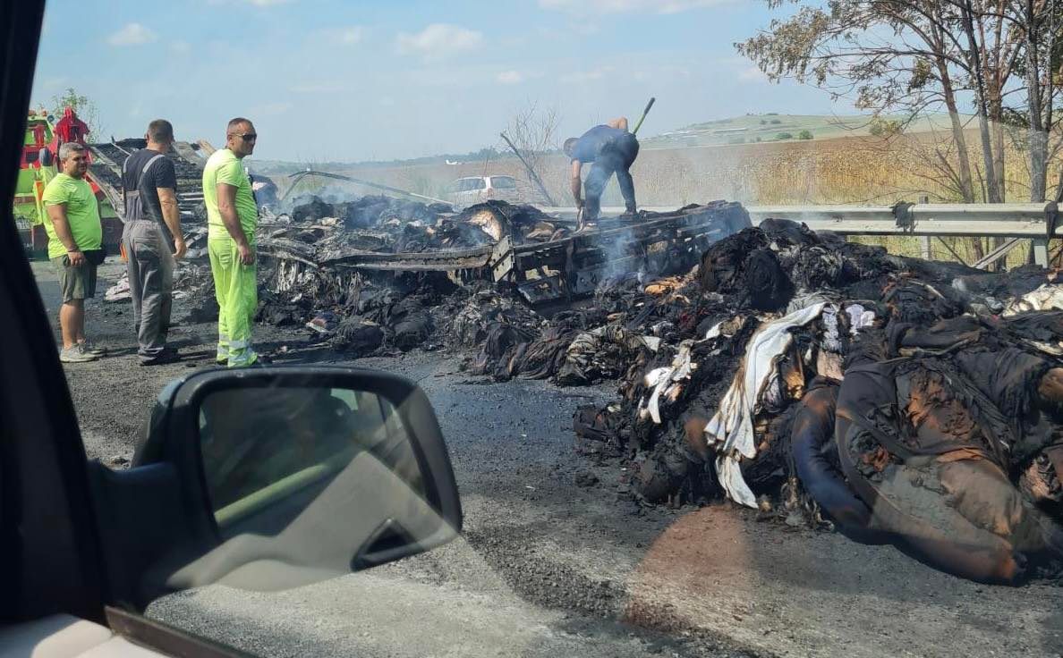 Клона, дълга над 10 километра, се е образувала на автомагистрала Тракия в региона на Белозем. Тя е в платното посока София, там където сутринта се възпламени тир, претрупан с текстил. " Тапата е голяма, час и половина ни лиши да изминем 5 километра ", описа за TrafficNews пловдивчанка, която се връща от морето.