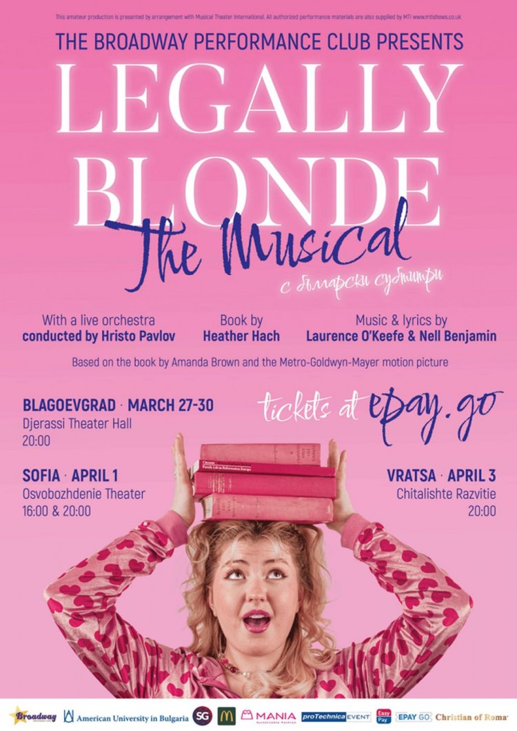 Клуб,,Бродуей ” към Американския университет в България ще сложи следващ мюзикъл от богатия репертоар на световноизвестния спектакъл. Между 27 март и 3 април под съпровода на оркестър с диригент Христо Павлов групата приготвя за своите фенове продукцията,,Професия русокоска “ – мюзикъл на британски с български надписи.