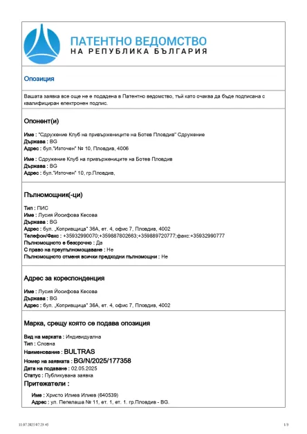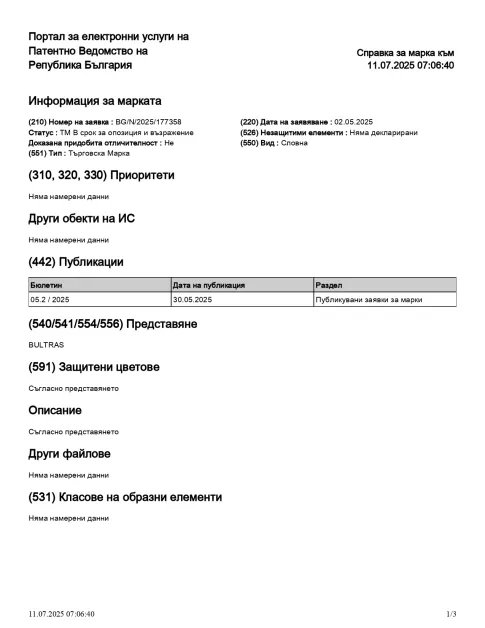 С изненада разкрихме, че някогашният ни служащ е подал заявление за регистрация на марка „ Bultras “ и е записал свое сдружение „ Бултрас Шоп “ ЕООД. Решихме още веднъж да изчакаме и да не нагнетяваме напрежение, макар че не считаме, че някое физическо лице има права върху марката.