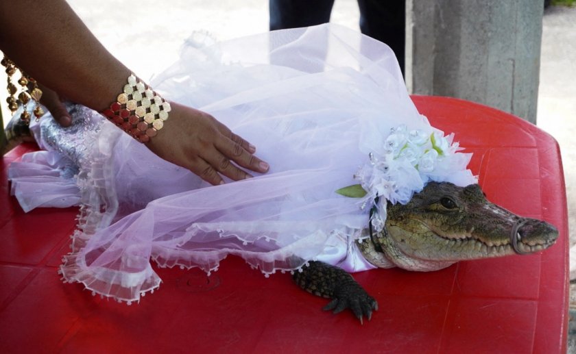 Кмет на малко мексиканско село се ожени за женски алигатор на гала, която датира от епохи, с вярата това да донесе шанс на рибарската общественост в селището.