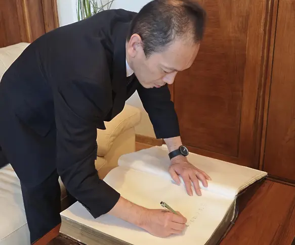 В знак на почитание и другарство кметът доктор Валентин Христов сервира протоколни дарове на формалните посетители, а господин Мачида остави свое обръщение към жителите на Плевен в Почетната книга на града.