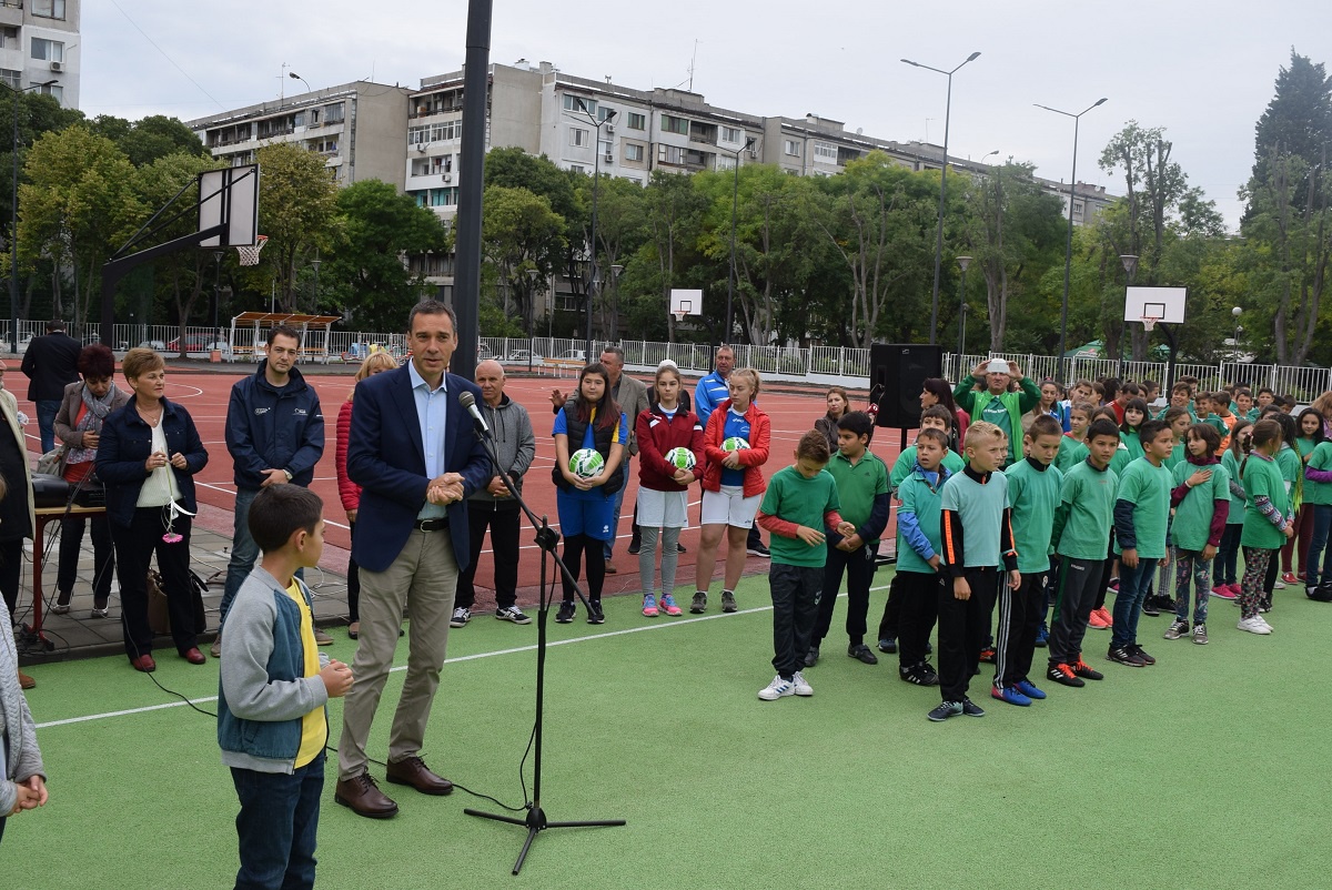 Кметът Димитър Николов и министър Красен Кралев посетиха през днешния ден поредност от градски събития, отдадени на Европейската седмица на спорта. Началото бе обещано в ОУ " Братя Миладинови ". В напълно обновеното дворно пространство на учебното заведение се организира футболна среща сред бургаските възпитаници и техни посетители от Четвърто главно учебно заведение " Кирил Христов " - Стара Загора.