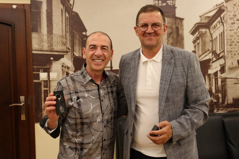 Димитър Маринов получава даровете от хасковския кмет Станислав Дечев