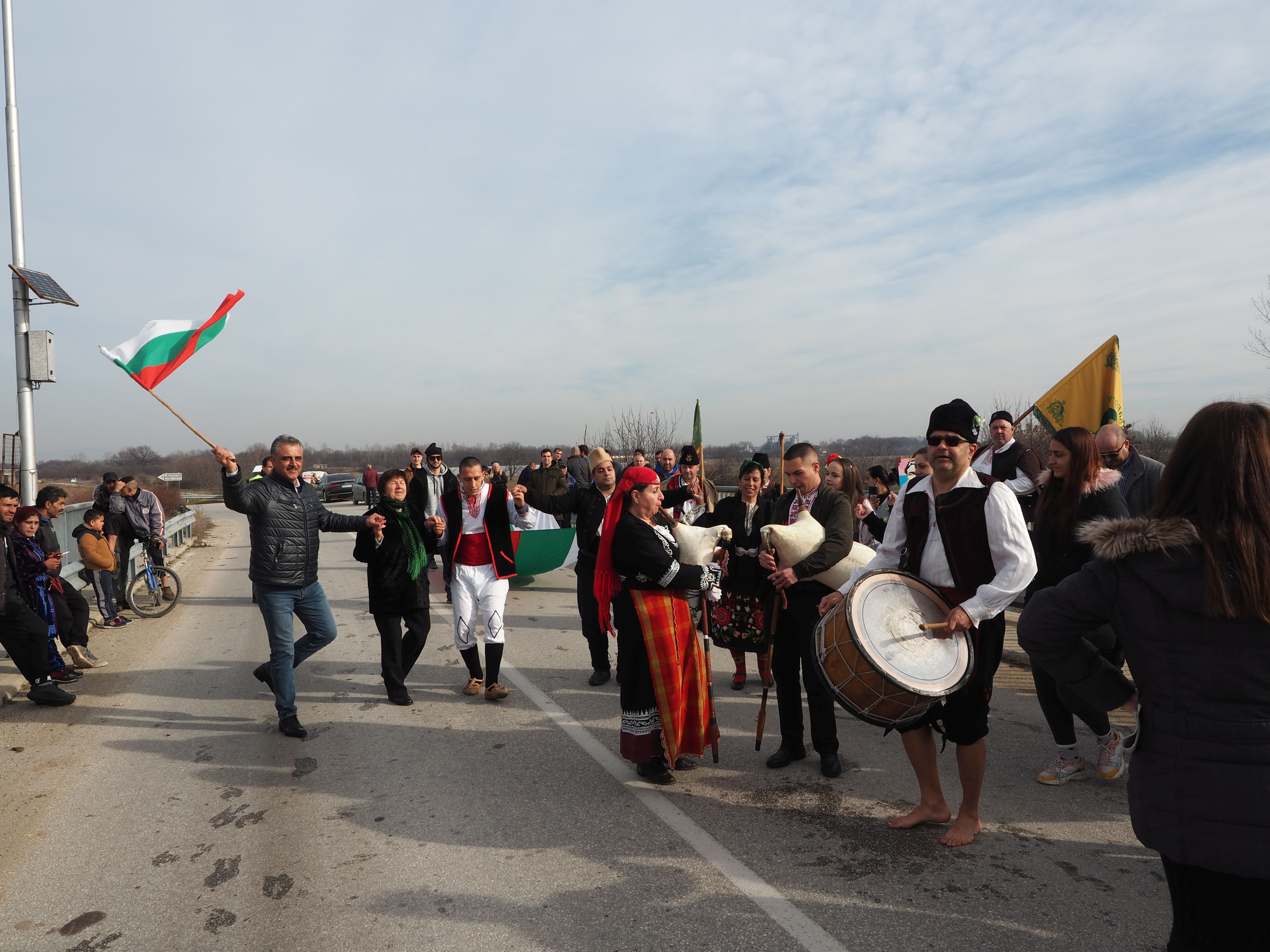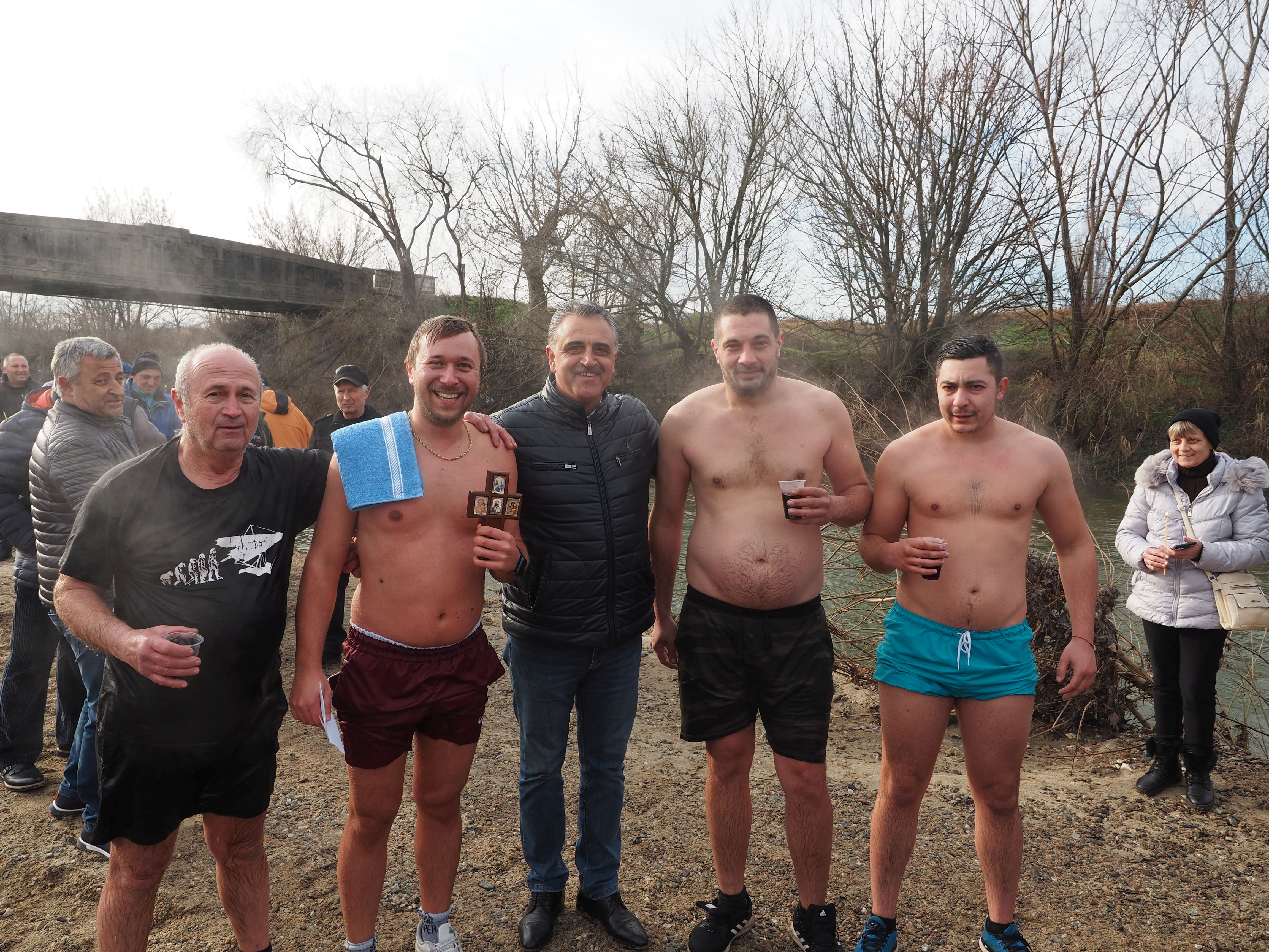 Младежи в национални носии от съдружие „ Богоявление “ изиграха обичайно мъжко хоро във водите на река Стряма, а кметът на община „ Марица “ Димитър Иванов поведе хорото на моста.