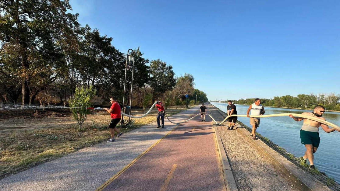 Посредством потопяема помпа момчетата употребяват за гасенето вода от Гребния канал.