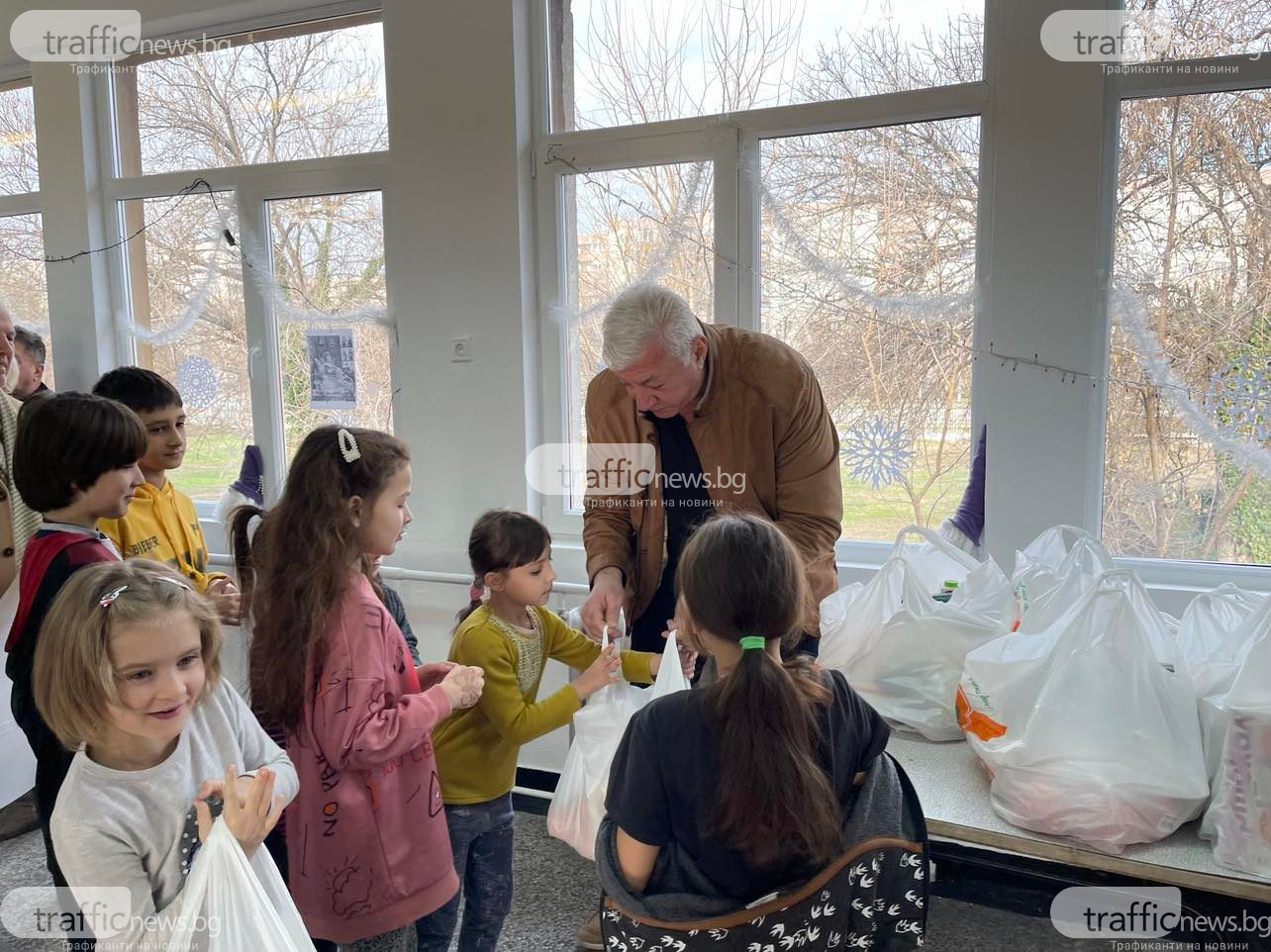Кметът раздаде пакети с лакомства и хранителни артикули на децата, а тези за техните родители остави в постройката на бежанския център.