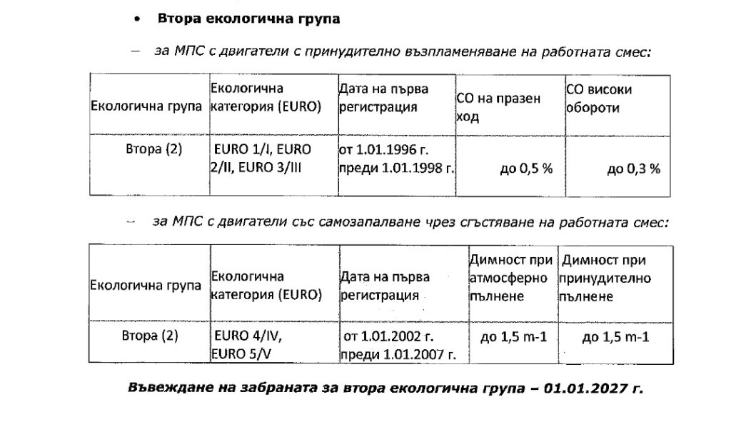 5. Екологичната група на колите, за които ще важат рестриктивните мерки, да бъде избрана от последния Годишен механически преглед за инспекция на техническата редовност на моторното транспортно средство, според Наредбата за периодическите прегледи за инспекция на техническата редовност на пътните транспортни средства.