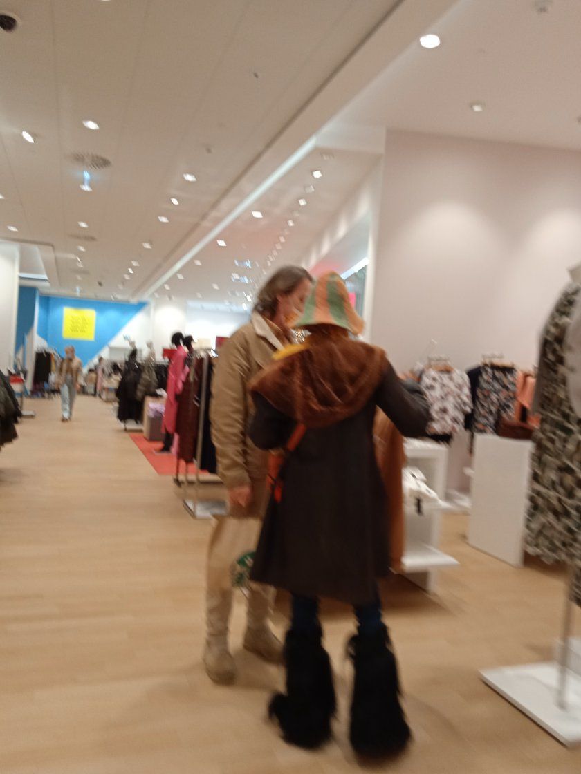 Калина беше дегизирана с космата шапка идиотка в няколко цвята. С сходни, само че не маркови, обикалят и столичните клошари, както и хора в внимателно положение. Въпреки че беше в магазин и нямаше слънце, царската наследница не се разделяше със слънчевите си очила, скривайки разкривените си очи, които към този момент са с видоизменена форма от N на брой корекции. Шареният шал и палтото в зелено и кафяво се допълваха от оранжева чанта, черен панталон и кукерски космати ботуши, като че ли заети от участник във фестивала „ Сурва”, написа в. " Уикенд ".