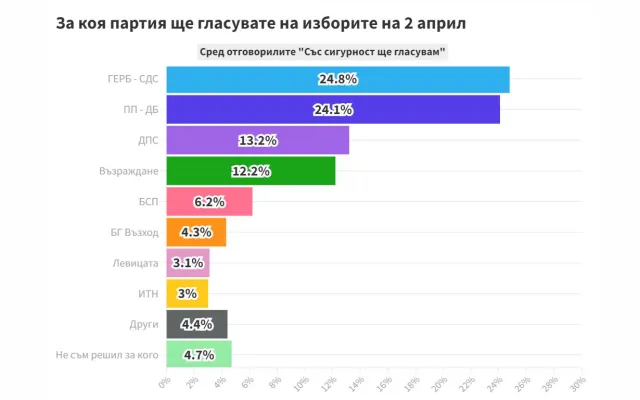 Проучване: Равен шанс за ГЕРБ-СДС и ПП-ДБ на върха, възможни обрати в последните 10 дни
