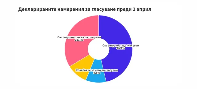10,1% от респондентите дават отговор, че към момента не са решили дали да отидат до урните на 2 април. 9,8% са хората, които споделят, че се двоумят кого да поддържат на изборите.