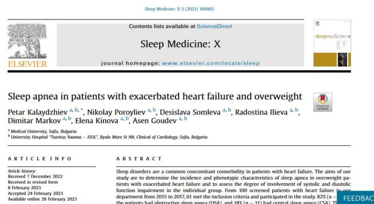 Съществува директна връзка сред сънната апнея и сърдечната непълнота. Това се споделя в публикация на доктор Петър Калайджиев от Клиниката по кардиология на ИСУЛ, оповестена в влиятелното американско списание Sleep Medicine: X, изучаващо проблемите на съня. В нея надареният кардиолог, който по време на пандемията от ковид, оглавяваше най-голямото Коронавирус поделение в болничното заведение, показва своите проучвания измежду пациенти с остра сърдечна непълнота и сънна апнея. Оказва се, че сънната апнея е доста по-честа при хора с обострена сърдечна непълнота. Наличието на сънна апнея е самостоятелен рисков фактор, който утежнява прогнозата при тези пациенти, се споделя още в публикацията, която е оповестена.