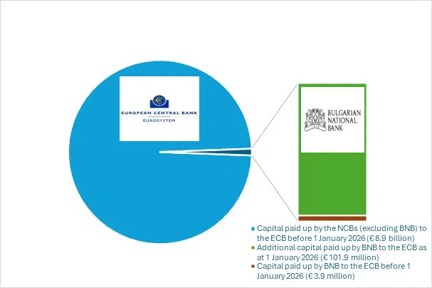 В резултат на присъединението на България към Евросистемата е нараснало общия размер на импортирания капитал на ЕЦБ до 9 милиарда евро. Тази цифра отразява общия записан капитал на ЕЦБ, като се изключи сумите, които шестте Национални централни банки от Европейски Съюз отвън еврозоната към момента не са длъжни да внесат.