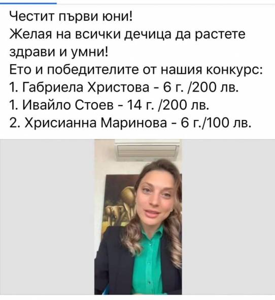 Шуменските деца пък бяха въодушевени от Боряна Георгиева, която провежда състезанието „ Шумен през детските очи “. Зам.-председателката на комисията по въпросите на децата, младежта и спорта в Народното събрание бе мощно затруднена в избора на спечелили, по тази причина даде думата на потребителите в обществената мрежа. Така трите отличени точно на 1 юни с парични суми художници бяха определени посредством гласоподаване.