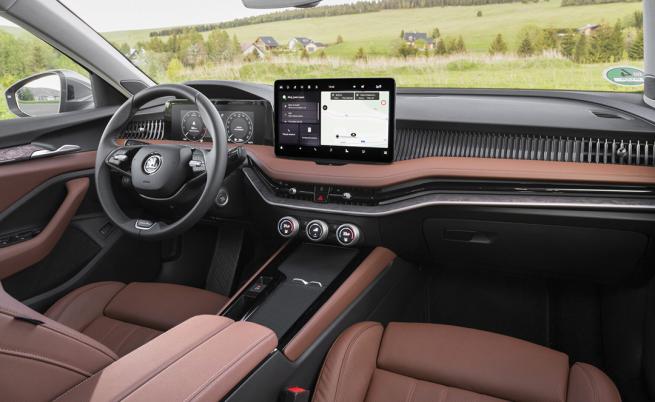 По средата на таблото е инсталиран 13-инчов централен екран, приборното табло е 10-инчово, като за пръв клиентите могат опционално да поръчат и Head-up екран. Преработената конструкция на инфотейнмънт менюто улеснява боравенете със системата с помощта на трите съществени меню икони: Home, Car, App. Навигацията е супер, по тази причина не е належащо да се прибягва да “гугълска “. Иначе имаме до 28 Simply Clever решения, като изключително ми подхожда решението за разчистване на централния екран от пръстови отпечатъци.