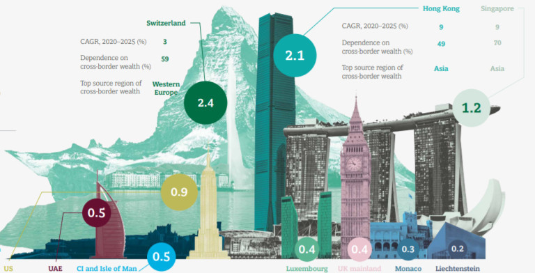 Когато приказваме за милионерите и милиардерите в света, Съединени американски щати и Китай са измежду водещите страни по брой на супербогаташите, следвани от няколко от другите водещи стопански системи. Що се отнася до местата, на които тези заможни хора съхраняват част от положението си обаче, нещата наподобяват по напълно друг метод. Държавата, която е обичаният сейф на богатите хора, е Швейцария. Европейската страна е отпред измежду финансовите центрове, в които милионерите и милиардерите от целия свят съхраняват част от благосъстоянието си. Към 2020 година благосъстоянието на задгранични жители, защитавано в Швейцария, възлиза на общо 2,4 трилиона $, демонстрират настоящите данни от проучването Global Wealth на Boston Consulting Group. На второ място като максимален център за привличане на благосъстояние е Хонконг. Към 2020 година там са съхранявани активи за общо 2,1 трилиона $. Според специалистите през 2023 година изключително с възходящия размер на финансовия поток от Китай, Хонконг ще успее да изпревари Швейцария и да се трансформира в най-големия хъб за благосъстояние в света. На трето място съгласно данните за предходната година е Сингапур с общо 1,2 трилиона $, следвана от Съединени американски щати. В топ 10 на най-големите центрове за привличане на благосъстояние участват главно европейски дестинации. След Швейцария в нея влизат още остров Ман, Англия, Люксембург, Монако и Лихтенщайн.