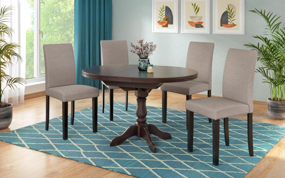 Чудесно решение за огромна и комфортна трапезна маса е – комбиниране на издръжливост, качество, функционалност, идеално допълнени от елегантната ѝ визия, която придава моден акцент на всеки интериор. Това сърце на трапезарията е майсторска направа, снабдена със сачмен механизъм за разпъване и с тапички на краката, които защищават подовата настилка от надраскване.