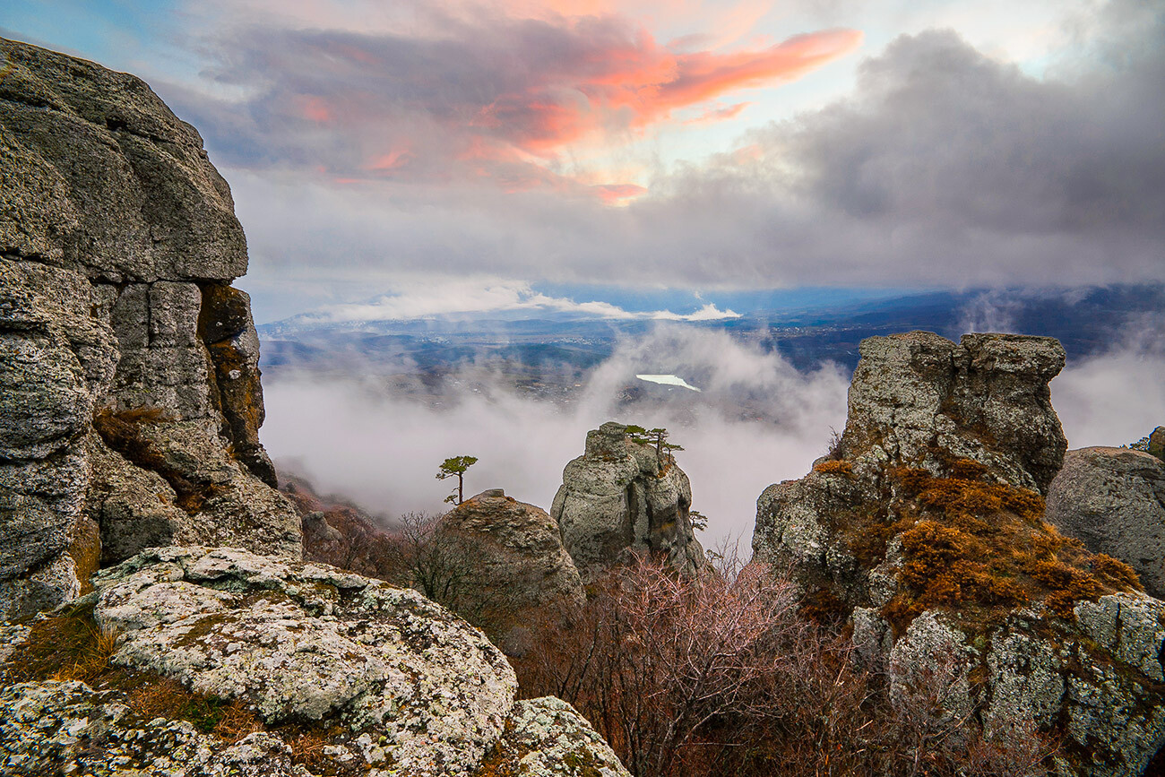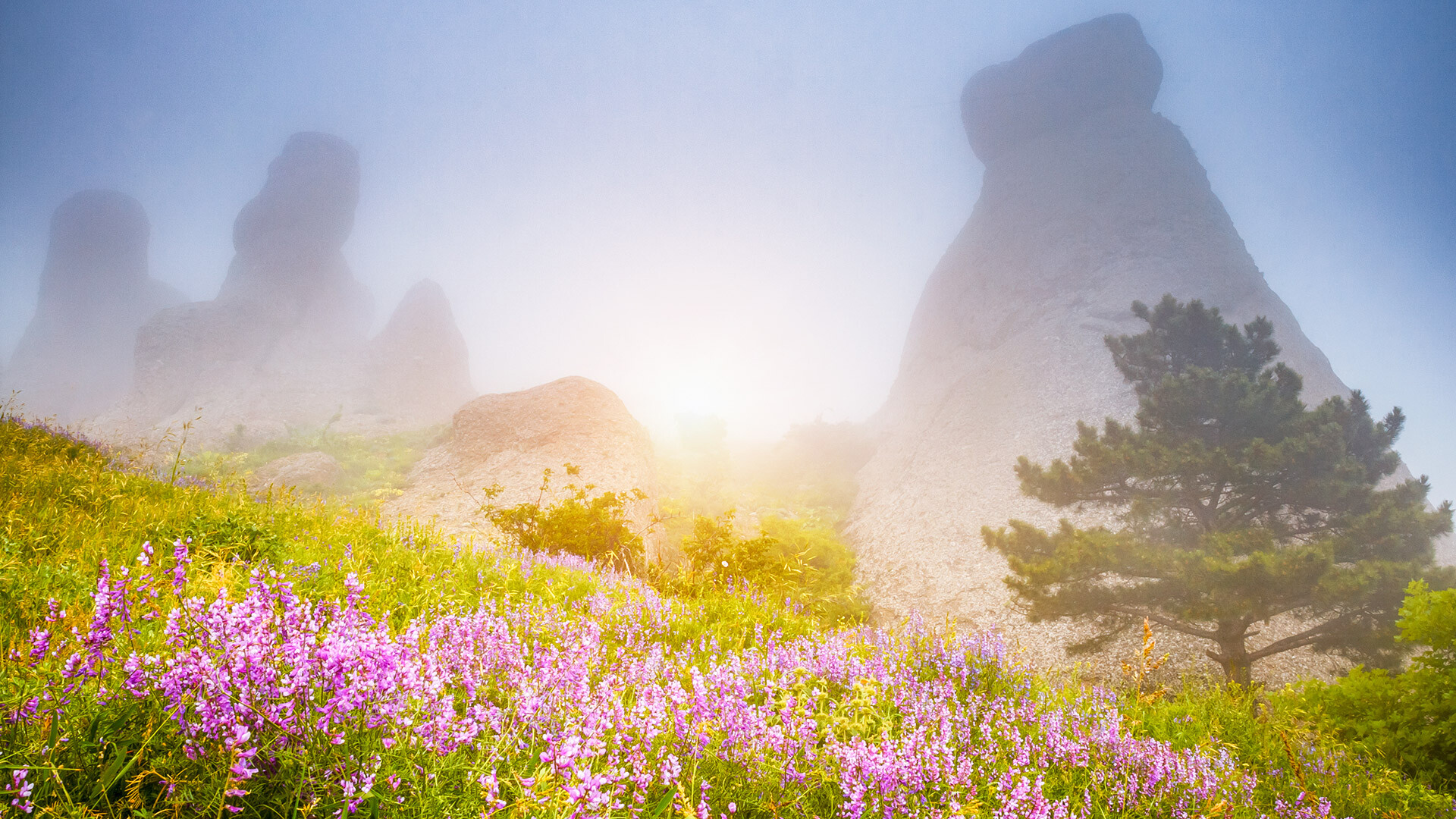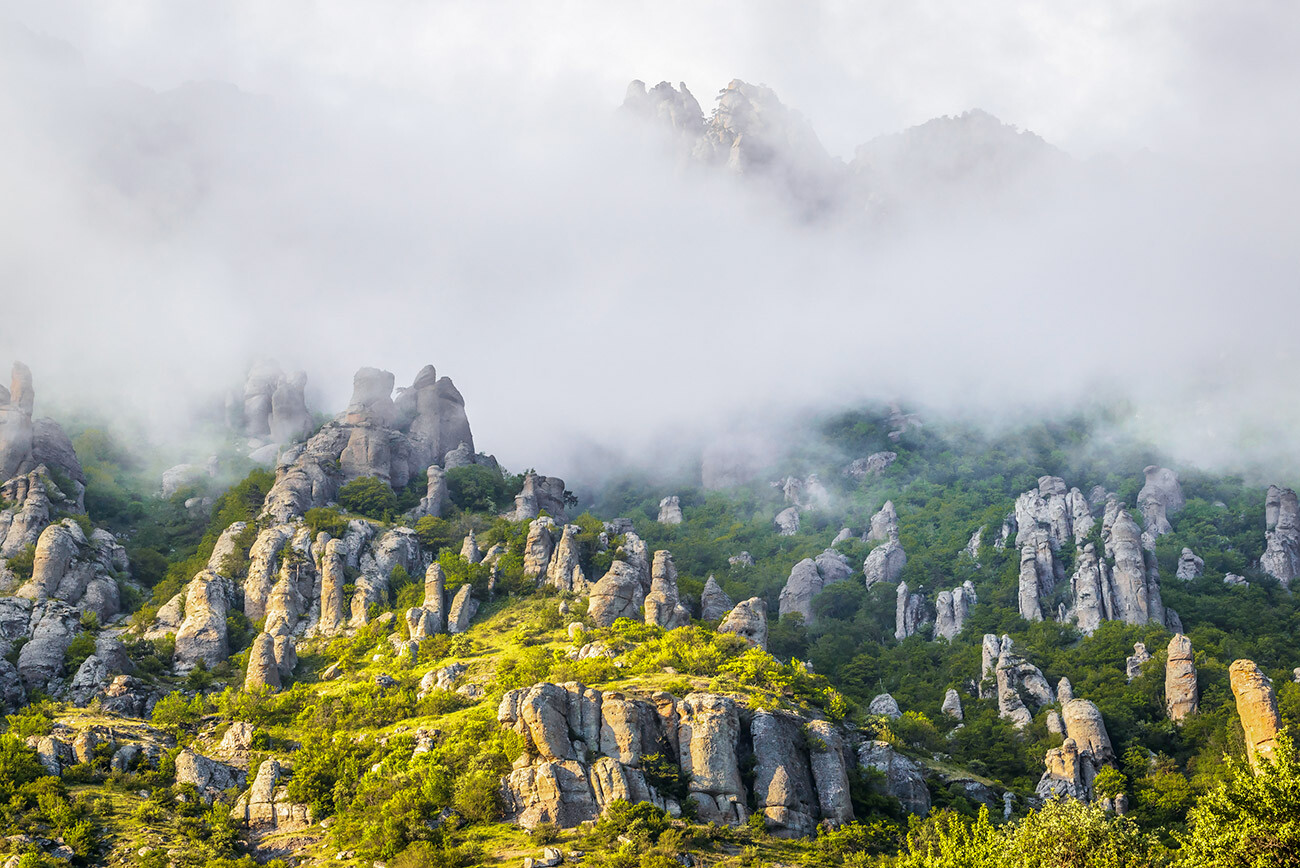 Когато над хълмовете падне мъгла, тези странни планински структури получават мистериозни форми.
