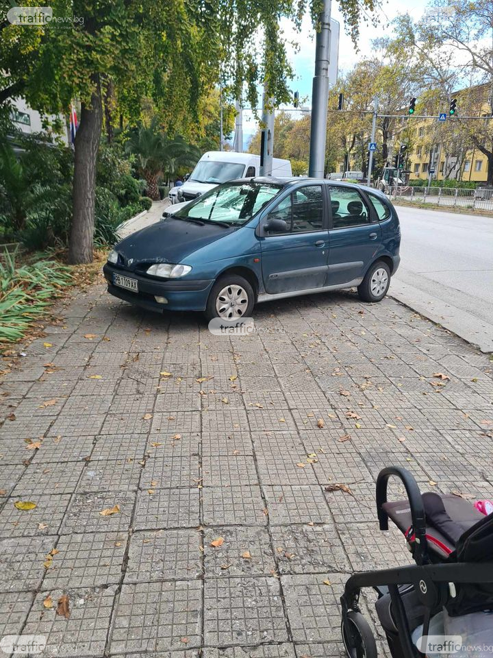 Когато няма място пред кафенето най-лесно е да паркираме на тротоара. Така разсъждават някои пловдивчани, които явно не се замислят, че попречват пътя на майки с колички и пешеходци. За следващата нагла постъпка на пловдивски водач, алармира четец на TrafficNews , който живее в квартала. Той се е натъкнал на неуместната обстановка през неделната си разходна по бул. „ Васил Априлов ". При доближаване до кафене на булеварда, пътят му бива препречен от автомобил, който е запушил пътя на пешеходци. Така те са задължени да преминат през улицата, където минават коли, с цел да подминат наглеца.