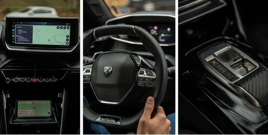 Впечатление вършат и гланцово-черната лайсна в основата на прозорците, емблемата GT и алуминиеви прагове с черен надпис PEUGEOT.