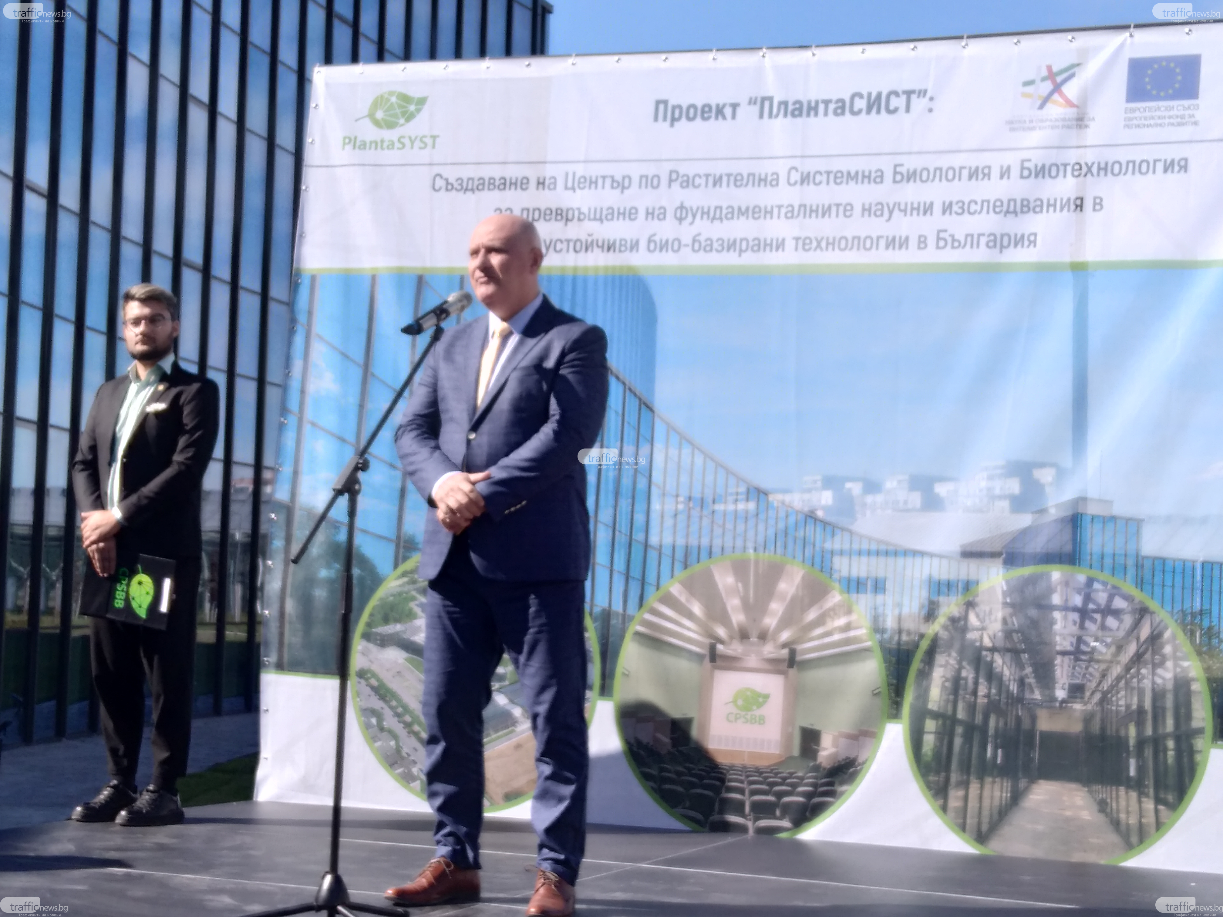 Той изрази усещанията си от зданието, както и от изследователския труд на научния екип на ЦРСББ. Припомняме, че Центърът за върхови научни достижения е издигнат за по-малко от две години в границите на план PlantaSyst. Допълваща поддръжка за построяването на модерния кампус на Центърът по растителна систематична биология и биотехнология (ЦРСББ) бяха обезпечени по Оперативна програма НОИР от българското държавно управление. Теренът, върху който е построено зданието, е дарен от Община Пловдив.