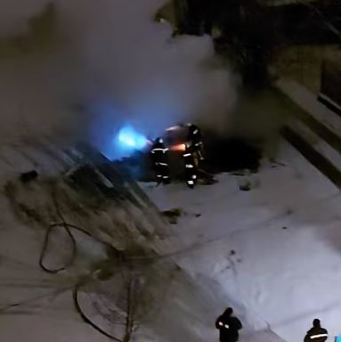 На фрагменти, публикувани във Фейсбук, се вижда горящата кола, от която излиза гъст пушек. Чуват се и гърмежи. Пристигнали са пожарникари, които са загасили огъня.