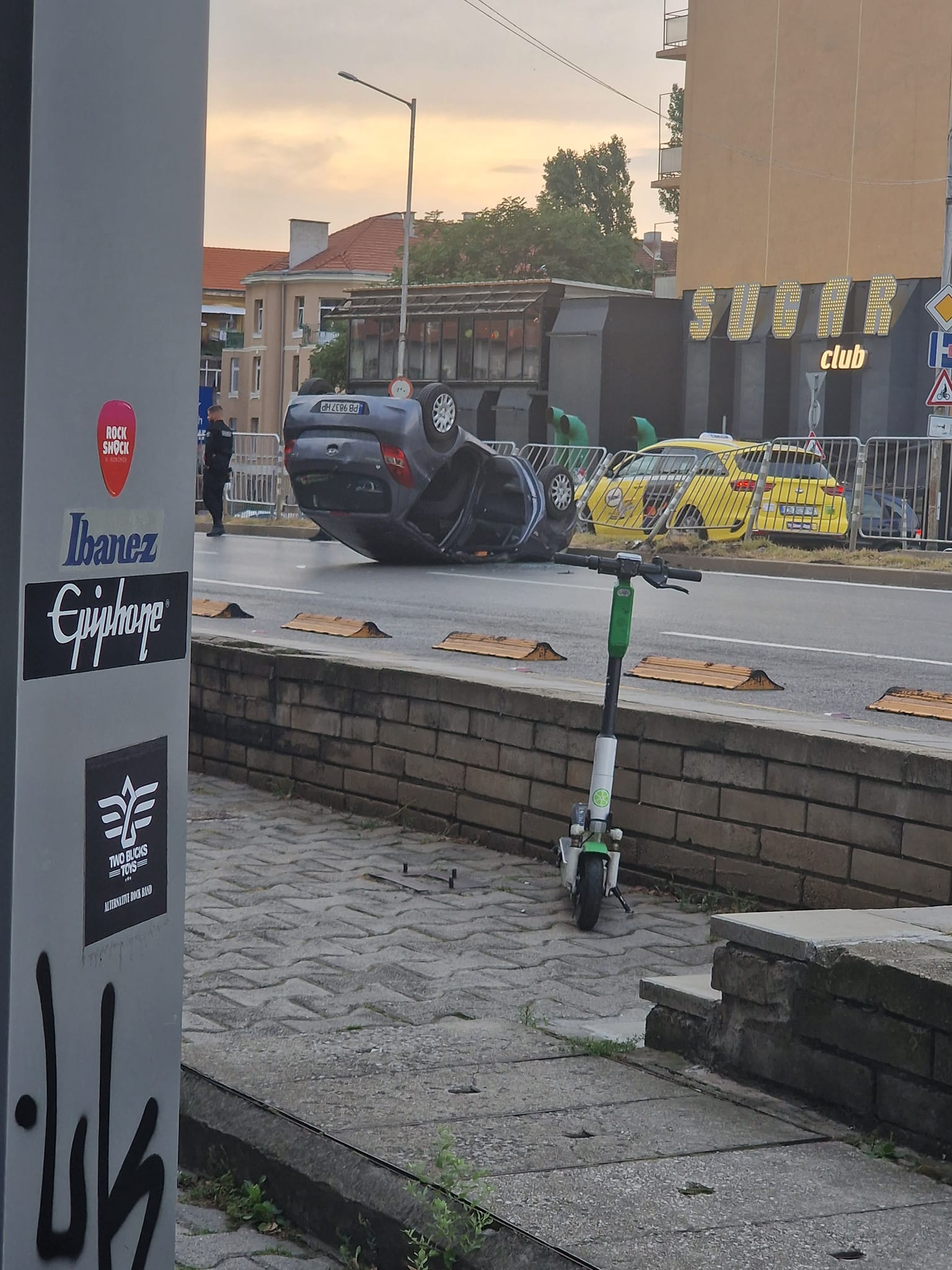 Кола с пловдивска регистрация се обърна по таван след ПТП в София
