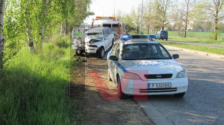 Украинска кола се вряза в дърво край Русе, двама са пострадали СНИМКИ
