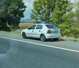 Кола пламна на АМ Тракия, пристигнаха полицаи и огнеборци СНИМКИ