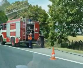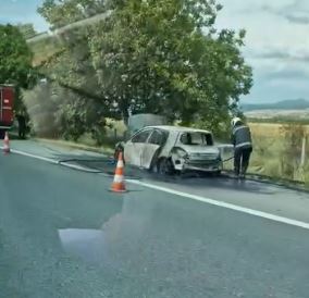 Машината е пламнала в региона на 77-ми км. Автомобилът, намиращ се в спешната лента, е изгорен. На местопроизшествието са пристигнали служители на реда и огнеборци.