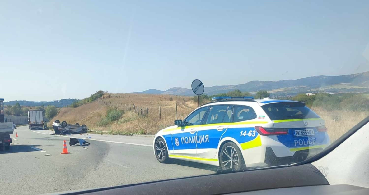 Кола се пробърна по таван на автомагистрала " Струма " след тунел " Големо Бучино ", посока Перник, видя Glasnews.bgв обществените мрежи.