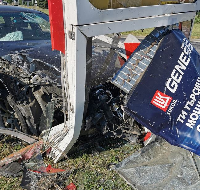Мъртвопияна шофьорка се вряза в бензиностанция СНИМКИ
