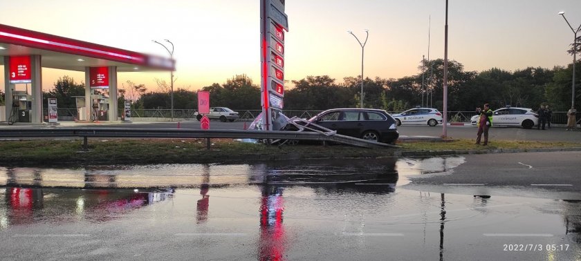 Кола се вряза поредно в хидрант и рекламно пано на бензиностанция в Бургас и провокира наводняване в кръговото кръстовище на изхода за Варна рано тази заран.