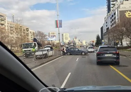 Кола се вряза в разграничителните ограждения на бул. в София и се озова в насрещното.