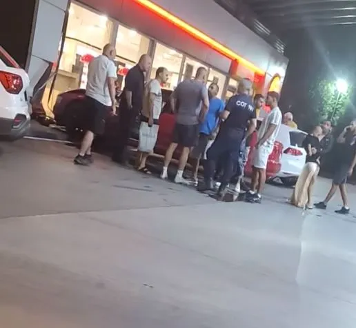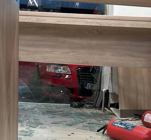 Кадри, разпростанени във Фейсбук, демонстрират, че алено " Ауди " се е блъснало във фасадата на обекта. Машината е счупила стъклената стена, като стъкла са се посипали по пода.