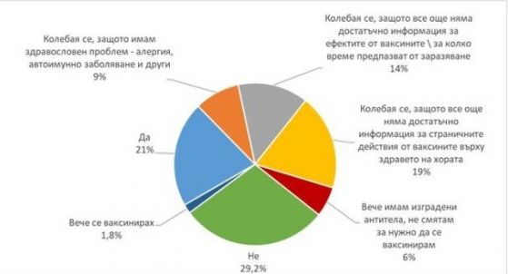 6% от интервюираните настояват, че към този момент имат антитела и по тази причина не смятат за нужно да се имунизират. 1,8% дават отговор, че към този момент са се ваксинирали.
