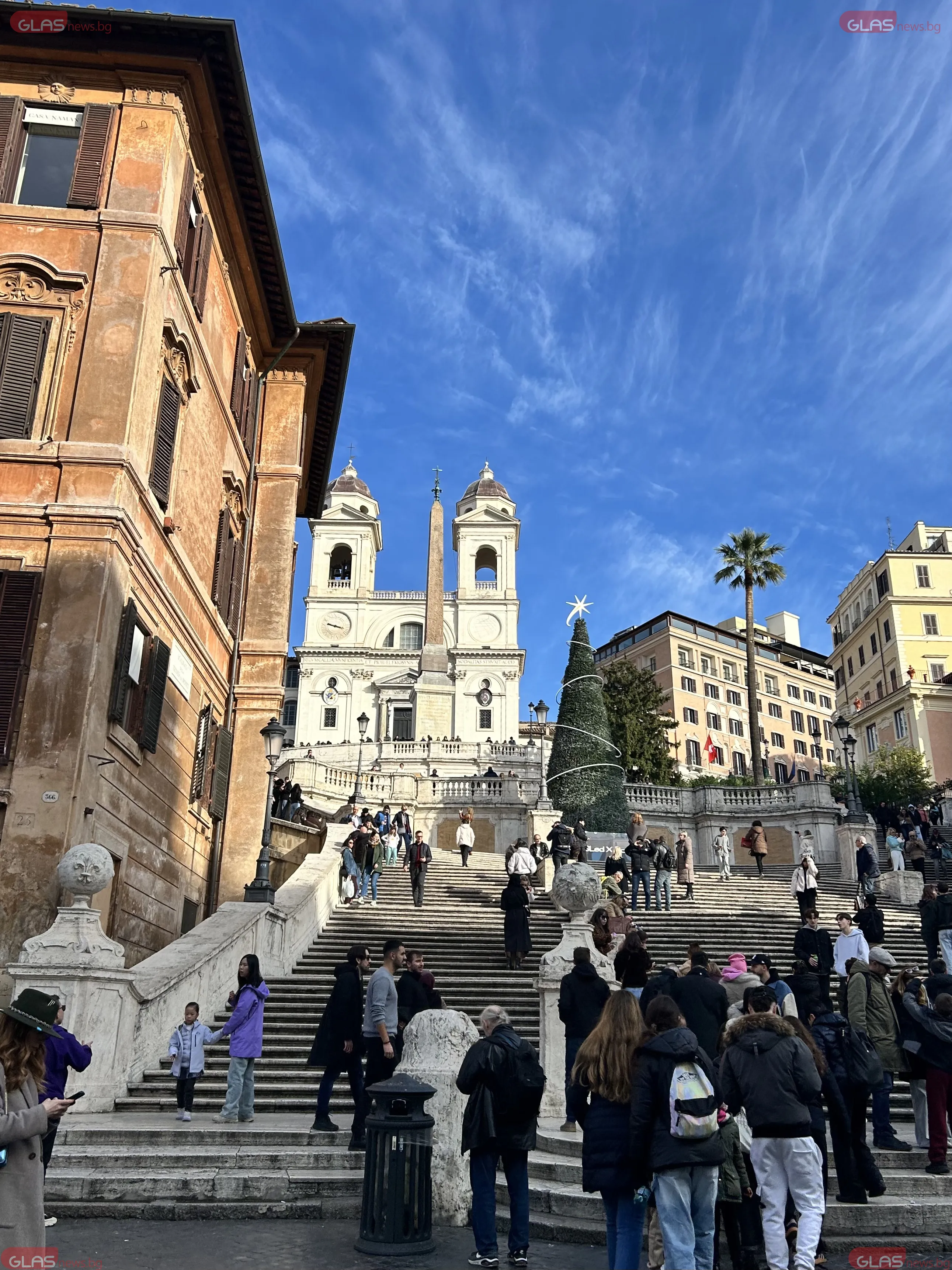 22. Снимки демонстрира осветена коледна елха на Испанските стъпала в Рим, Италия