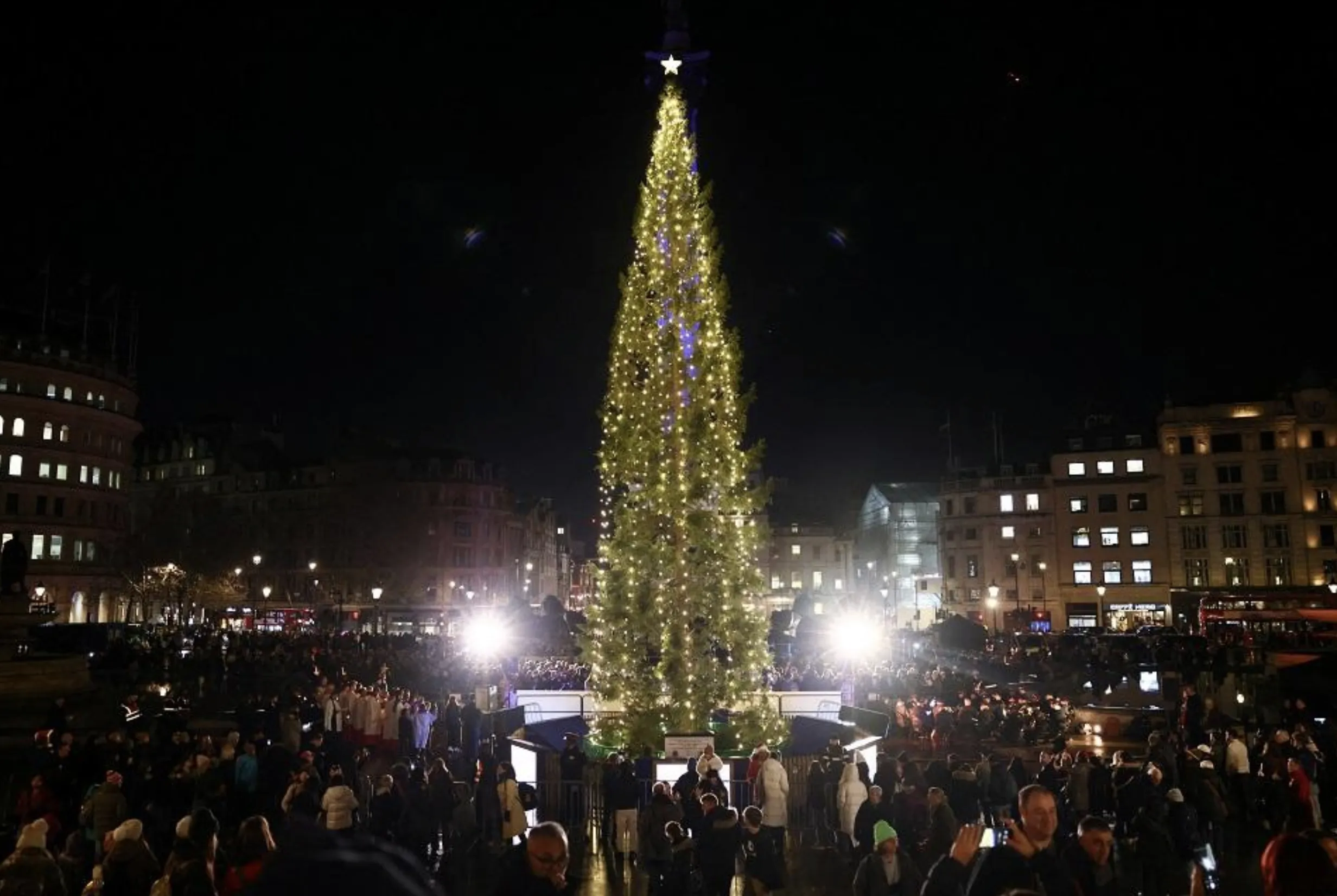 8. Коледната елха в Осло, дарена от народа на Норвегия, на церемонията по запалване на светлините на площад Трафалгар в Лондон, Англия