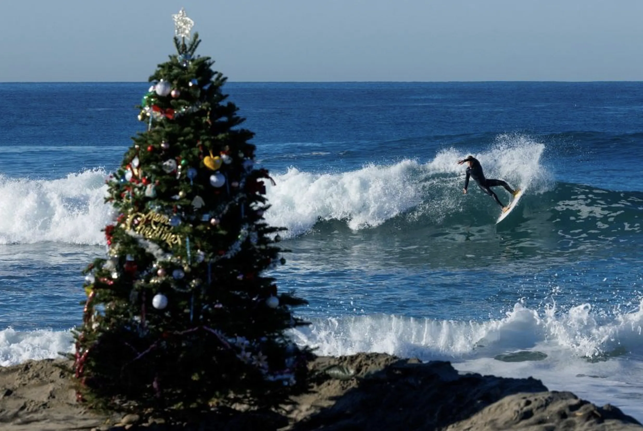 9. Коледна елха, сложена на плажа от 73-годишния Джони Сийсайд на плажа Кардиф Стейт в Енсинитас, Калифорния